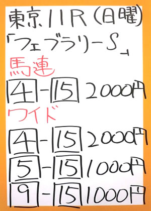 そして日曜日は、2015年最初のGⅠ「フェブラリーステークス」