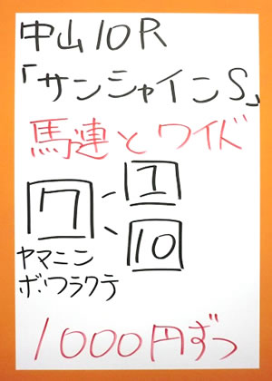| 中山10R サンシャインステークス | |