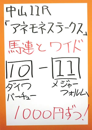 | 中山11R アネモネステークス | |