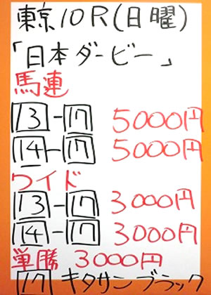 | 日曜東京10R 日本ダービー (GⅠ) | |