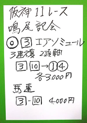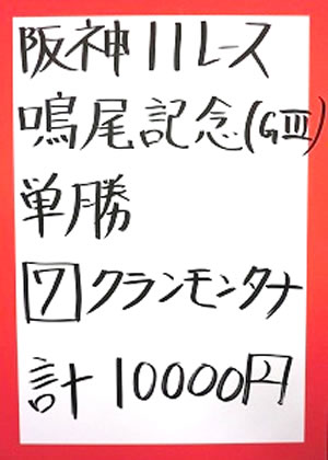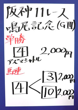 | 阪神11R 鳴尾記念(GⅢ) | |