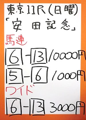 | 日曜東京11R 安田記念 (GⅠ) | |