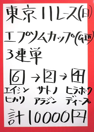 そんなキャプテンさん、最後の東京メインの予想発表で、突然の思いつきを実行!