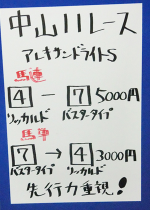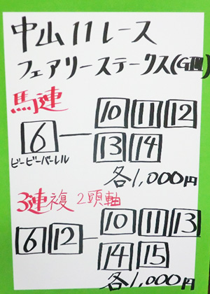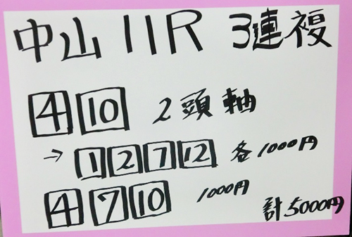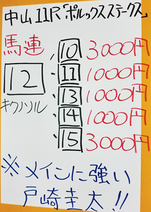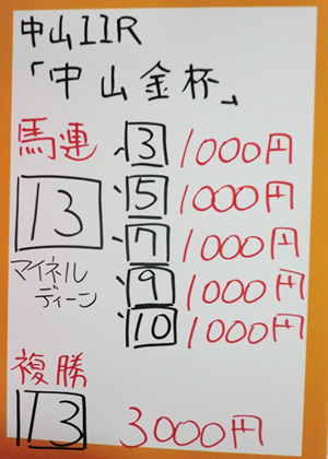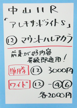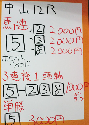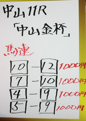 中山12レースも予想してもらいました。