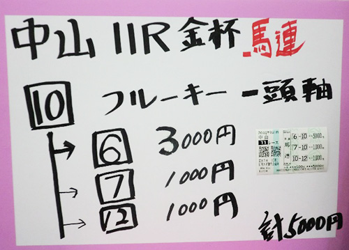 木之前騎手の買い目には、⑥が入っていました!惜しい!!