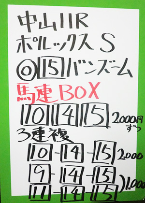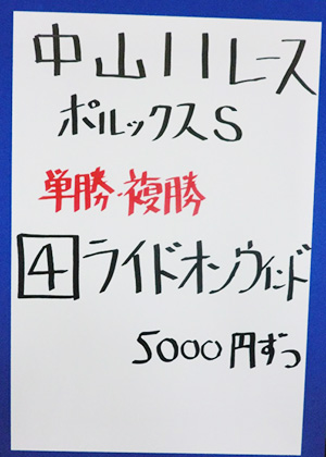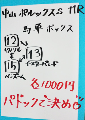 | 中山11R ポルックスステークス | |