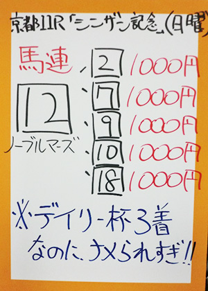 | 日曜 京都11R 日刊スポシンザン記念(GIII) | |