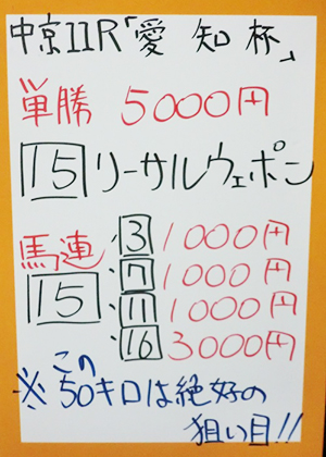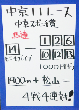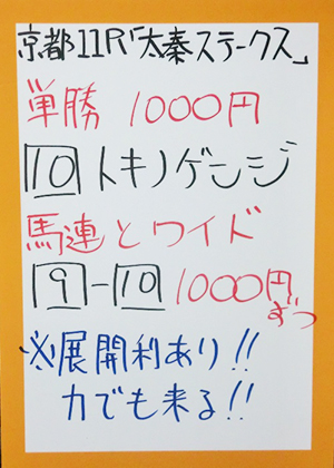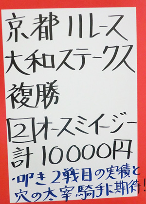 吉沢さん、大久保元調教師、的中おめでとうございます!