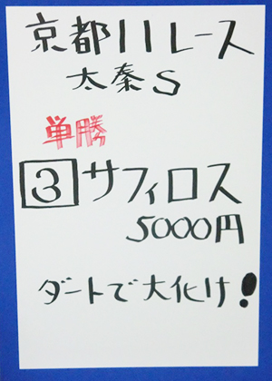 なんと、キャプテンさん、大久保元調教師、またまた的中!