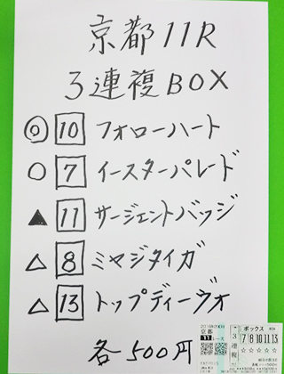 | 京都11R 京都牝馬ステークス(GⅢ) | |