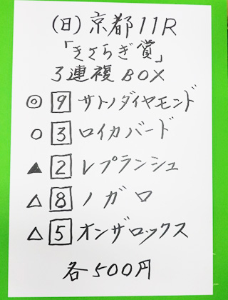 | 日曜京都11R きさらぎ賞(GⅢ) | |