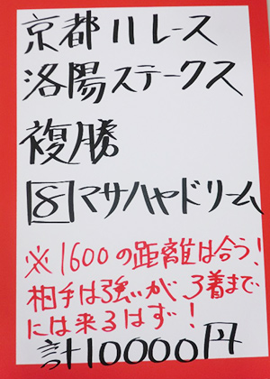 【結果】 1着(3)トウショウドラフタ・3番人気 2着(5)オデュッセウス・5番人気 3着(4)ドーヴァー・1番人気 |