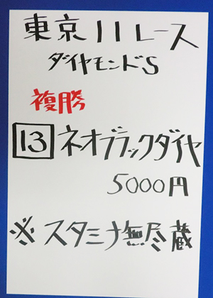 | 東京11R ダイヤモンドステークス(GⅢ) | |