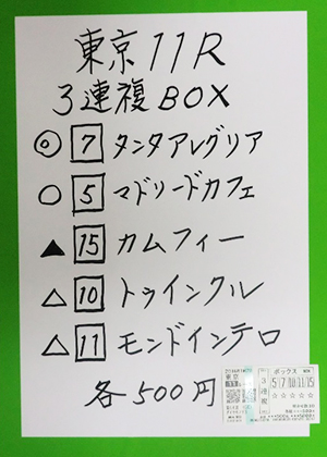【結果】 1着(15)モーニン・1番人気 2着(8)タールタン・6番人気 3着(2)グレープブランデー・10番人気 |