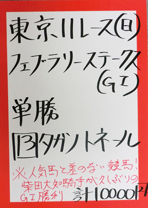 | 日曜東京11R フェブラリーステークス(GⅠ) | |