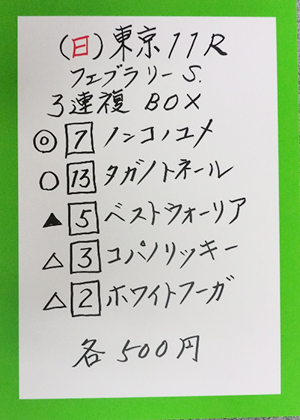 そして日曜日は、今年初のGⅠレース、フェブラリーステークスが行われました。