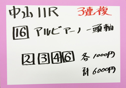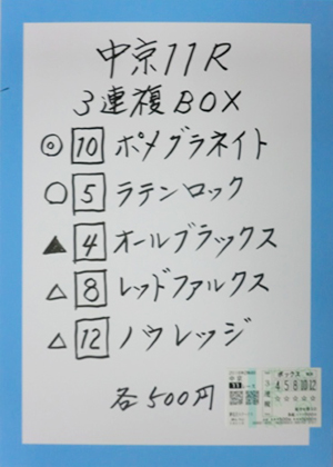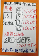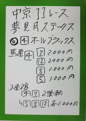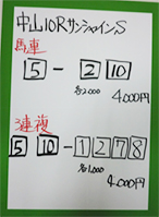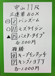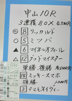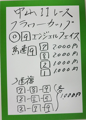 それでは中山11Rフラワーカップ(GⅢ)の馬券対決の結果です。