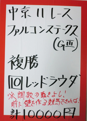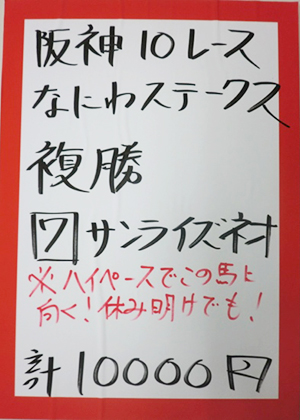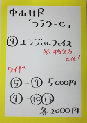 虎石さんが、先週に引き続き、的中!