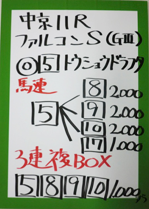 それでは注目のファルコンステークス(GⅢ)の予想対決の結果です。