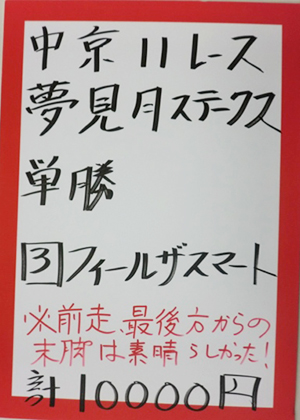 虎石さん、馬券対決2勝目!お見事です!!