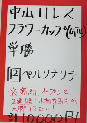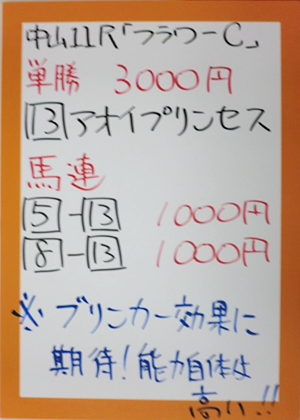 続いての馬券対決は今日の目玉!中山11Rフラワーカップ(GⅢ)