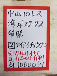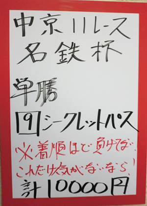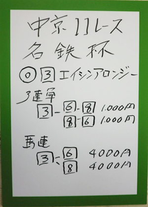 一緒に中京競馬場に行って、名鉄電車の前でく~ず~劇場をやったキャプテンさんも当てることができるのでしょうか?