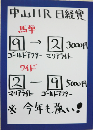 それでは中山11R「日経賞(GⅡ)」の馬券対決の結果です。