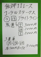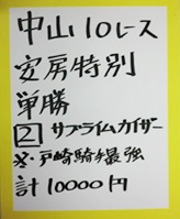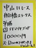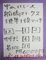 ともに4着だったメジャーエンブレムが軸でした。残念・・・。
