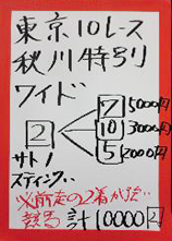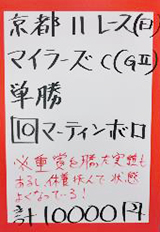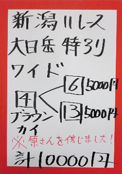 斉藤さん、がんばれ馬券(複勝)を見事的中!