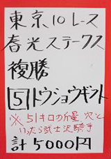 斉藤さんが14番人気⑤トウショウギフトの複勝を見事的中!!