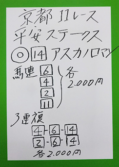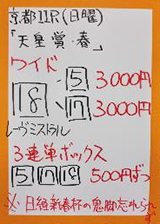 それではここから日曜京都メイン「天皇賞・春」【GⅠ】の予想結果です