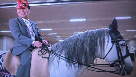 滅多に見ることが出来ない、誘導馬に跨る吉沢さんと共にスタート!