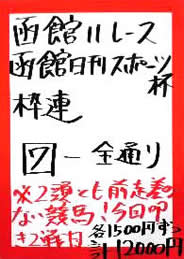 | 日曜函館11R 函館2歳ステークス(GⅢ) | |