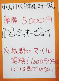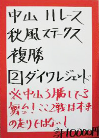| 中山11R 凱旋門賞初売記念 秋風ステークス | |