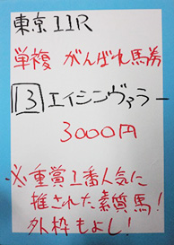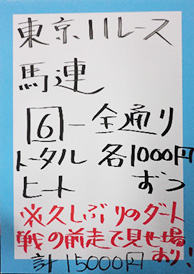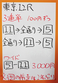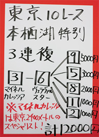 最後はスペシャル版ということで東京12レースの馬券対決です。