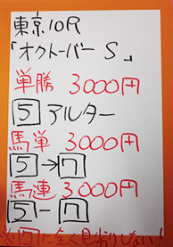 | 東京10Rオクトーバーステークス | ||