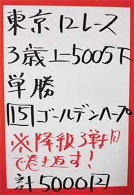 | 東京12R 3歳以上・牝500万下 | |
