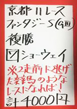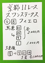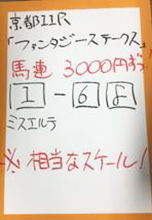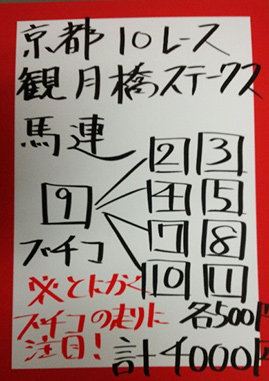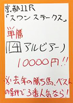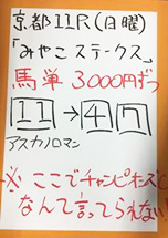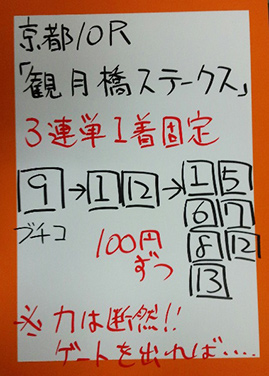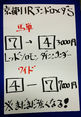 最後は日曜京都「みやこステークス」で馬券対決です。