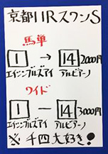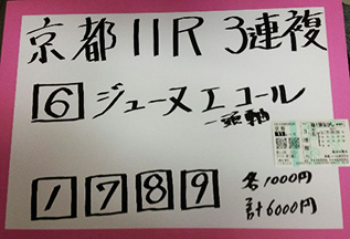 続いてはもう一方のダブル重賞!!京都メインの馬券対決。結果はこちら。