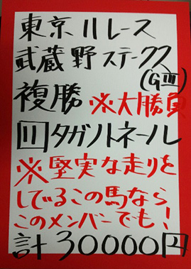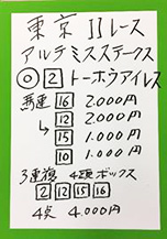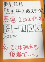 そのレーヌミノルを推奨し2着、見事的中となりました。