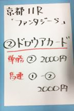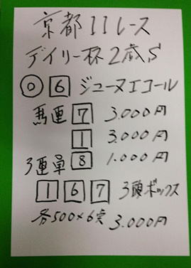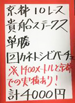 京都メインで馬券対決です。