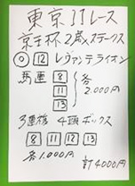 東京メインの馬券対決は如何に!!