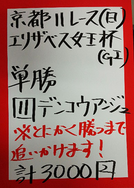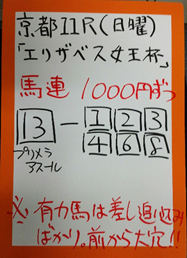 | 日曜京都11R エリザベス女王杯【GⅠ】 | |
