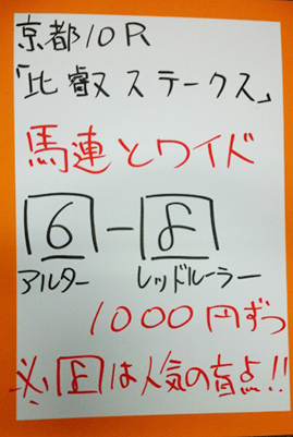 岡田総帥のアドバイスを聞く前に予想していた京都10R「比叡ステークス」。