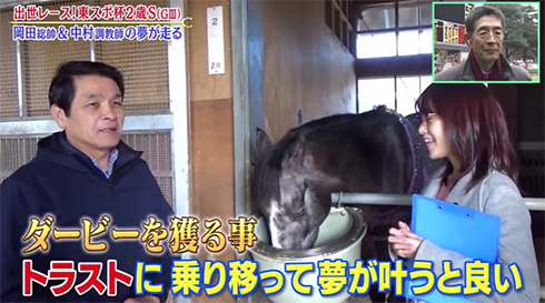 今回、トラストを出走させるマイネル軍団総帥岡田繁幸さんがゲスト出演!