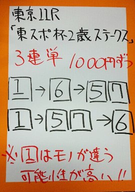 | 東京11R 東京スポーツ杯2歳ステークス【GⅢ】 | |
