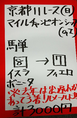 | 日曜京都11R マイルチャンピオンシップ【GⅠ】 | |