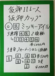 さあ、注目のスーパーGⅡ「阪神カップ」、馬券対決の結果はこちらです。