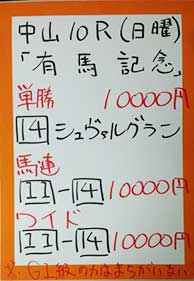| 日曜中山11R 有馬記念 【GⅠ】 | |