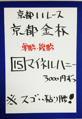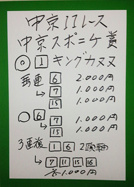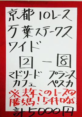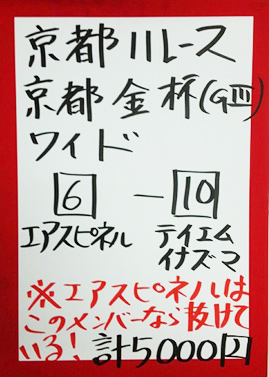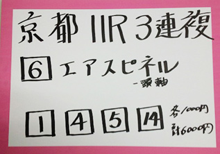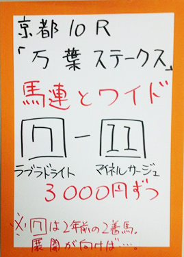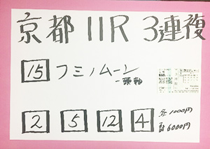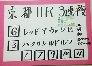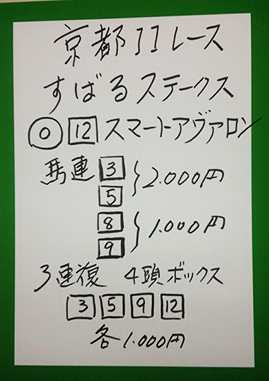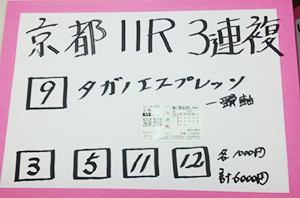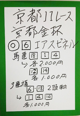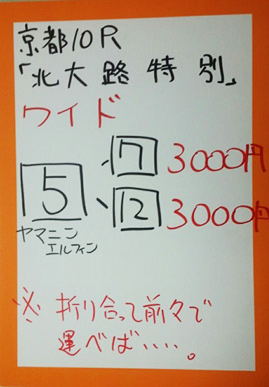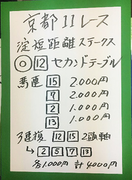 次は京都メインレースで馬券対決です。